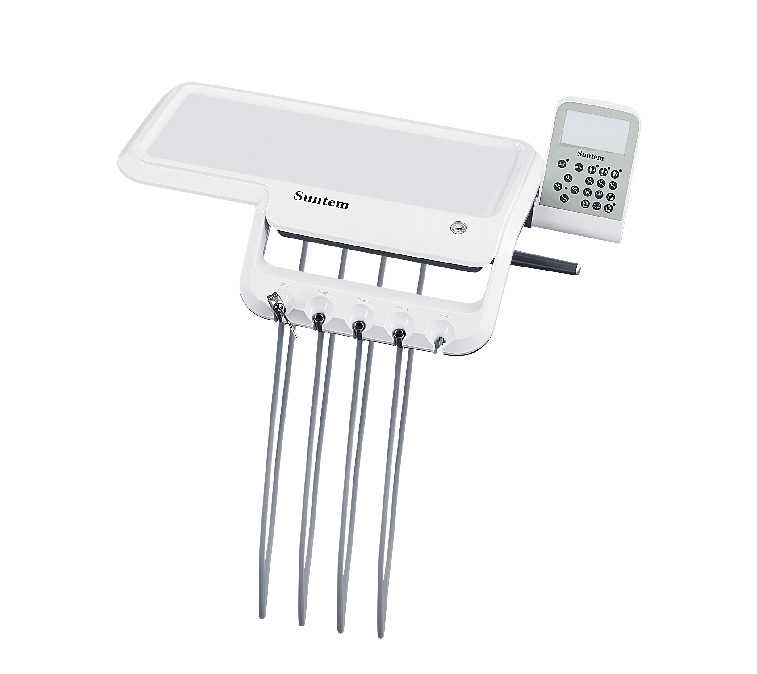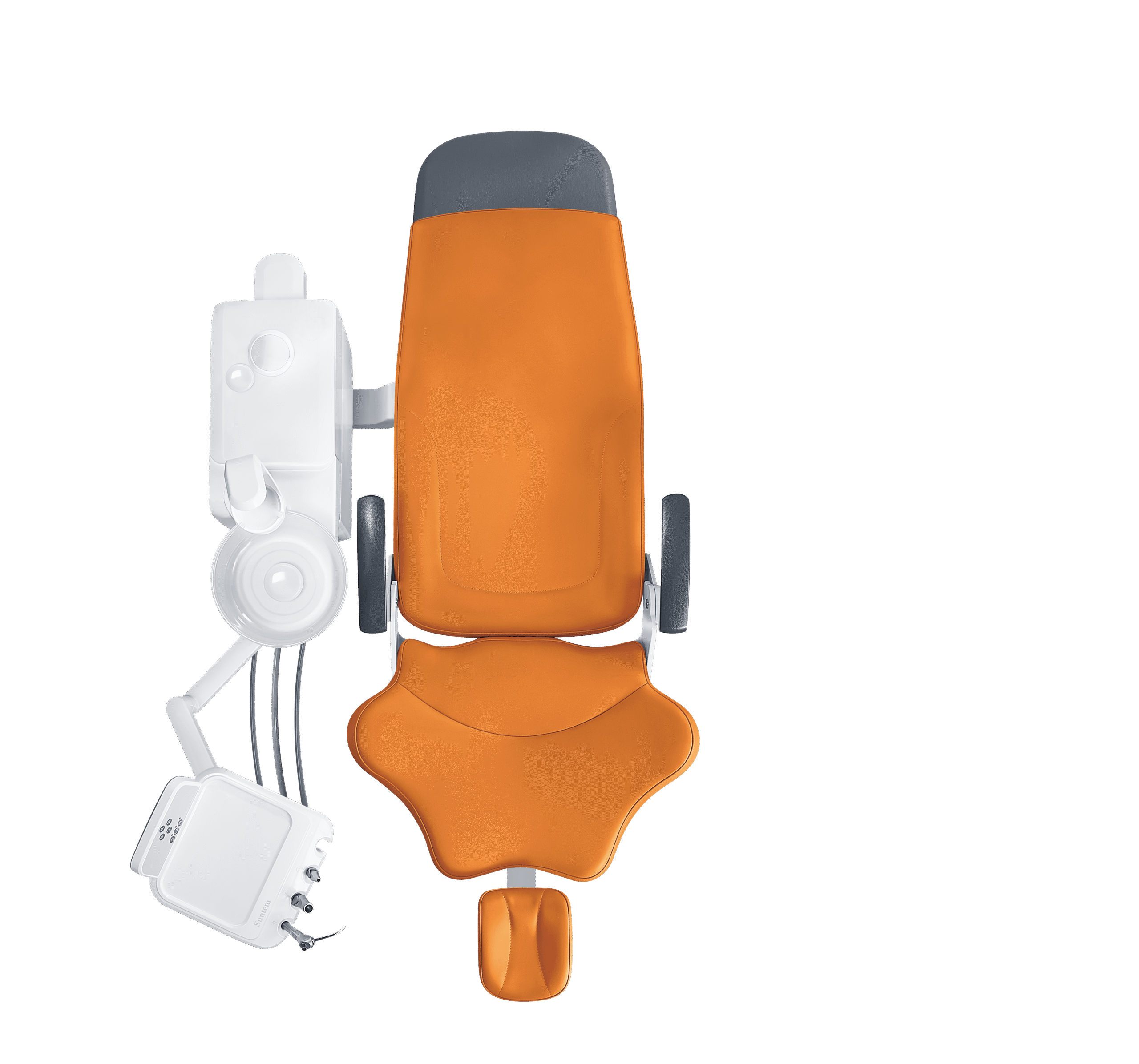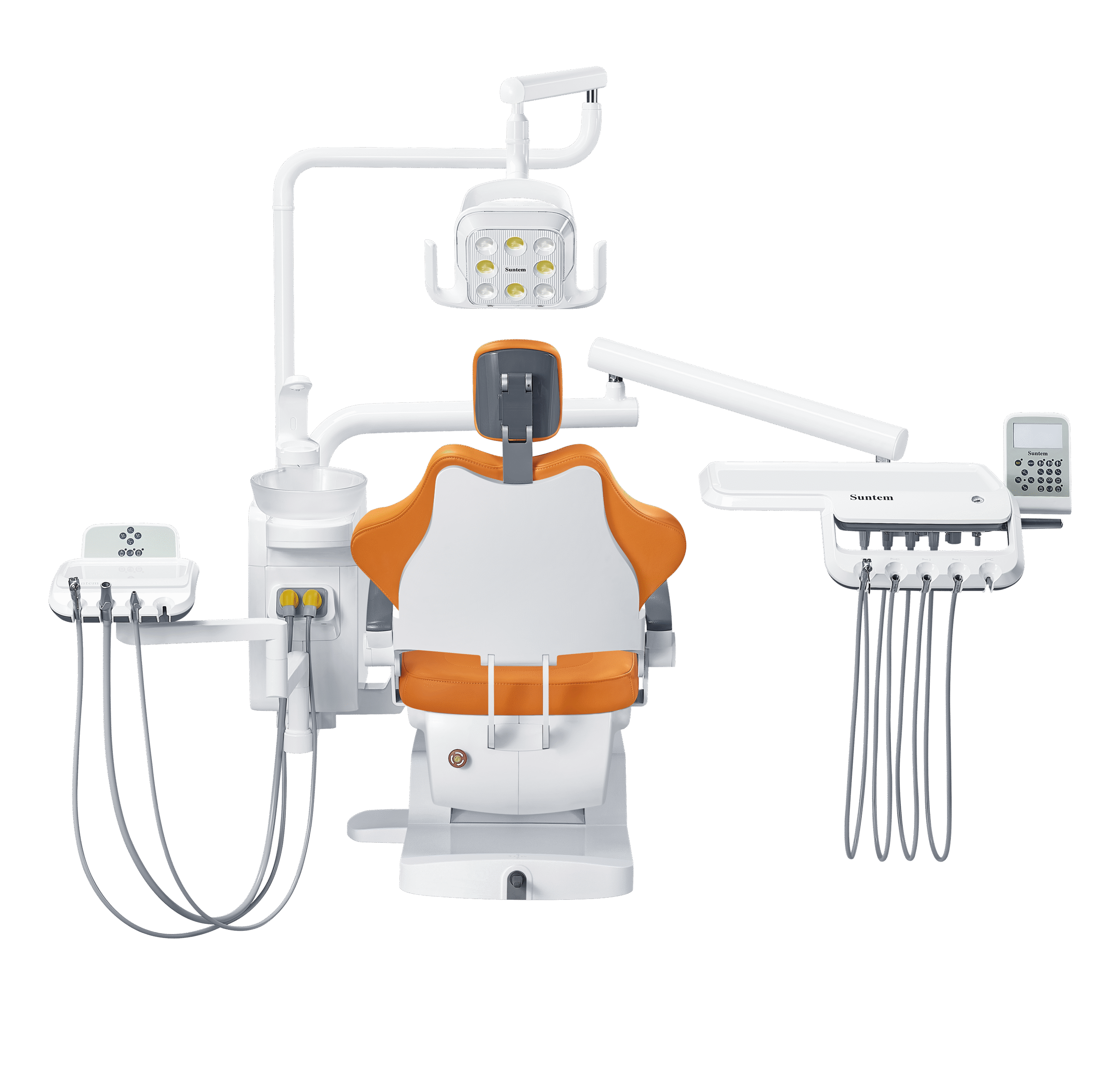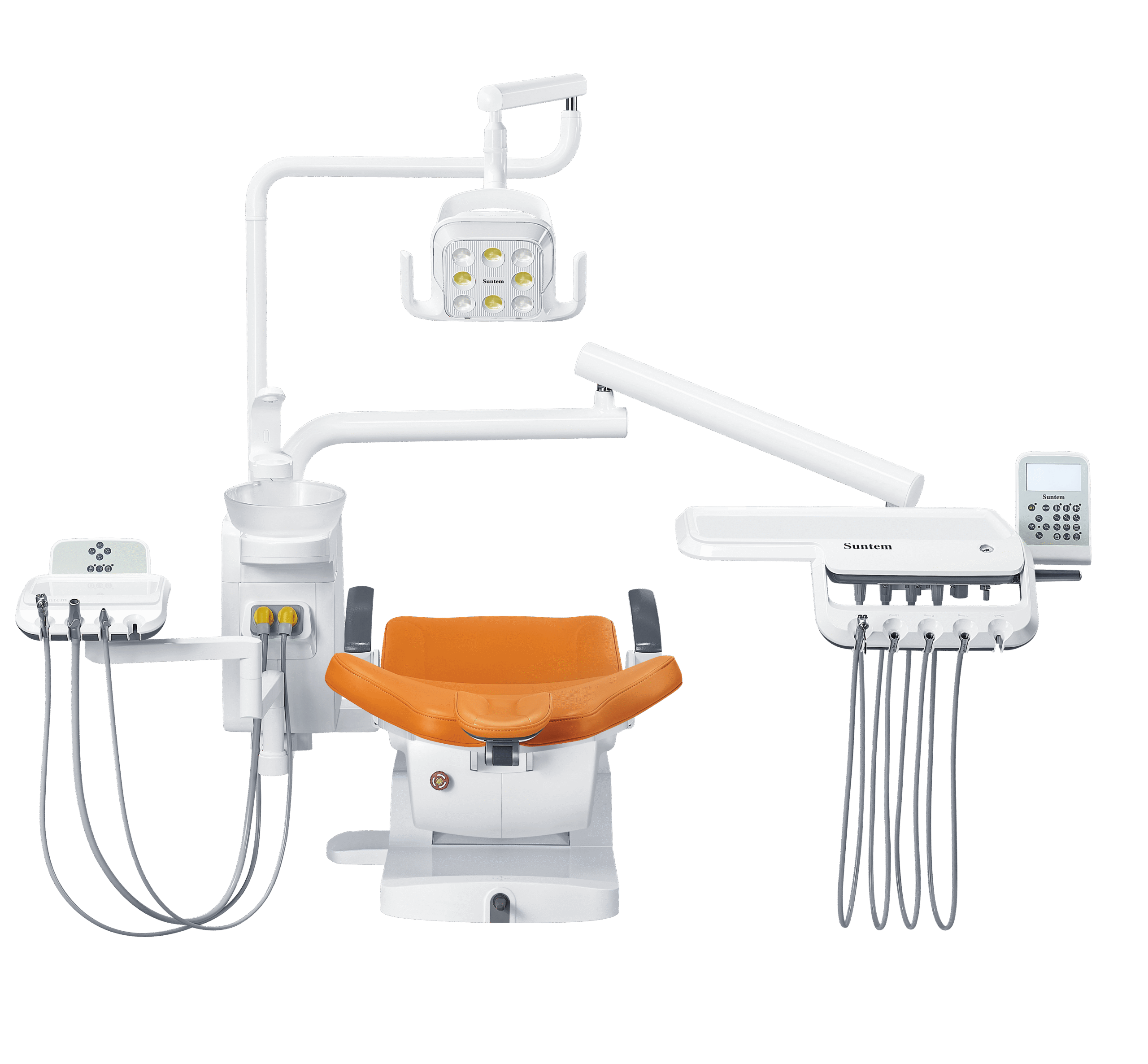 El equipo cuenta con un bracket estilo europeo con reguladores de agua y aire para piezas de mano, tres salidas para piezas de mano y nueve memorias totalmente programables, además de memoria de retorno a cero y memoria de enjuague. Incorpora un negatoscopio LED de tamaño dentoalveolar y panorámico, un diseño europeo con sistema flush de 1.5 litros, asiento ergonómico con memory foam, cabezal biarticulado y escupidera de cristal templado. También dispone de un poza pies rígido, bracket de asistente con controles de mando, eyector quirúrgico y de saliva, doble jeringa triple para operador y asistente, termostato para entibiar el agua del paciente, memoria de llenavaso y una lámpara operatoria LED bi-tono tipo quirófano, con sensor de encendido y regulador de intensidad ajustable hasta 35,000 lux.
